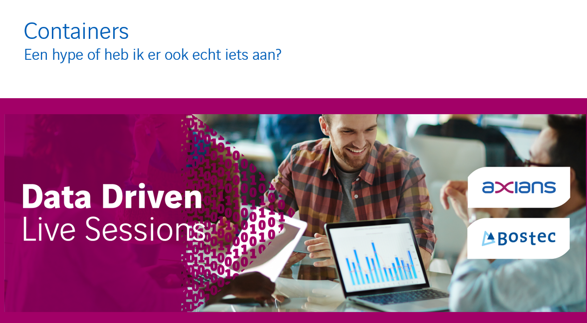 Containers in de IT zijn net als in de logistiek een afgesloten transportmiddel. Het verschil is dat er in dit geval software inzit. Vaak betreft het (een deel van) een applicatie met daarbij alle onderdelen die nodig zijn om deze applicatie te laten draaien. Een container kan makkelijk van de ene omgeving naar de andere omgeving worden verplaatst. Het maakt niet uit of ze in je eigen omgeving worden opgestart of vanuit de cloud, ze werken overal. ‘Build Once, Deploy Anywhere’ is de gevleugelde uitdrukking die hierop van toepassing is. De verschillende containers zijn daarnaast ook nog geïsoleerd van elkaar wat de stabiliteit ten goede komt.