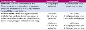 Om Eddon bouwstenen te kunnen gebruiken, heb je aanvullend de Exact ‘Enabling add-on’ rol nodig à € 1,60 p/m per gebruiker, of eenmalig voor € 54,- per gebruiker.