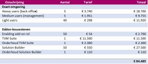 3. Wat kost Exact software per gebruiker?