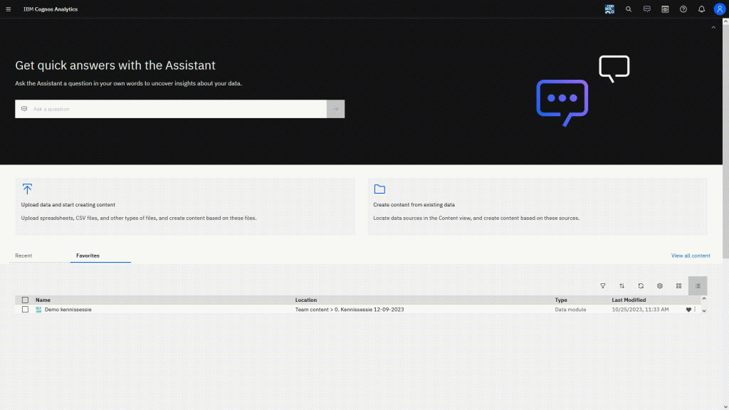IBM Cognos Analytics 12 beschikt standaard over een handige AI-assistent om mee te communiceren in ‘Natural Language’. De intuïtieve AI-aangedreven assistent helpt gebruikers om snel te beschikken over inzichten in data in eigen beheer. Aan de hand van een vooraf geselecteerde dataset stelt de AI-assistent vraagsuggesties voor waar je gebruik van kunt maken, of je stelt een eigen vraag. Belangrijk daarbij is de kunst van het formuleren van de juiste vragen en/of instructies om de beste resultaten uit de data te halen. De AI-assistent voorziet je vervolgens van tekstuele antwoorden op basis van de dataset, maar presenteert het antwoord op de vraag ook visueel om je te helpen bij het begrijpen van de inzichten. Deze datavisualisaties kun je eenvoudig toevoegen aan bestaande dashboards. Maar ook kun je de AI-assistent dashboards en rapportages laten maken van eigen datasets.
