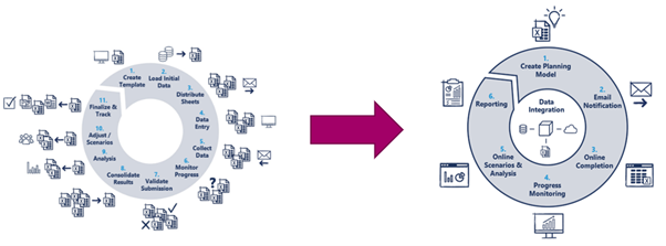 Door automatisch te koppelen op bestaande bronnen of een data warehouse ontstaat er één werkelijkheid dat zorgt voor een lagere foutenmarge en meer tijd om daadwerkelijk met cijfers aan de slag te gaan en de organisatie te kunnen sturen. Ook het gemakkelijk opstellen van scenario’s komt hiermee binnen handbereik.