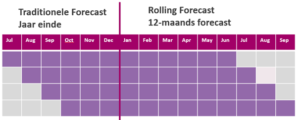 Op deze manier bent u in staat uw organisatie op een flexibele manier te sturen. Waarbij de rolling forecast het mogelijk maakt om op de constante veranderingen in te spelen. Dit zorgt voor een grotere nauwkeurigheid bij het voorspellen van de financiële toekomst.