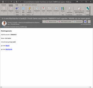 Het is nu mogelijk om bij het toewijzen van een klachtactie automatisch een notificatie te versturen. Dit kun je eenvoudig instellen via de klachteninstelling “E-mail wanneer toegewezen”. De opmaak van deze e-mail pas je aan in rapportnr. 11091620.