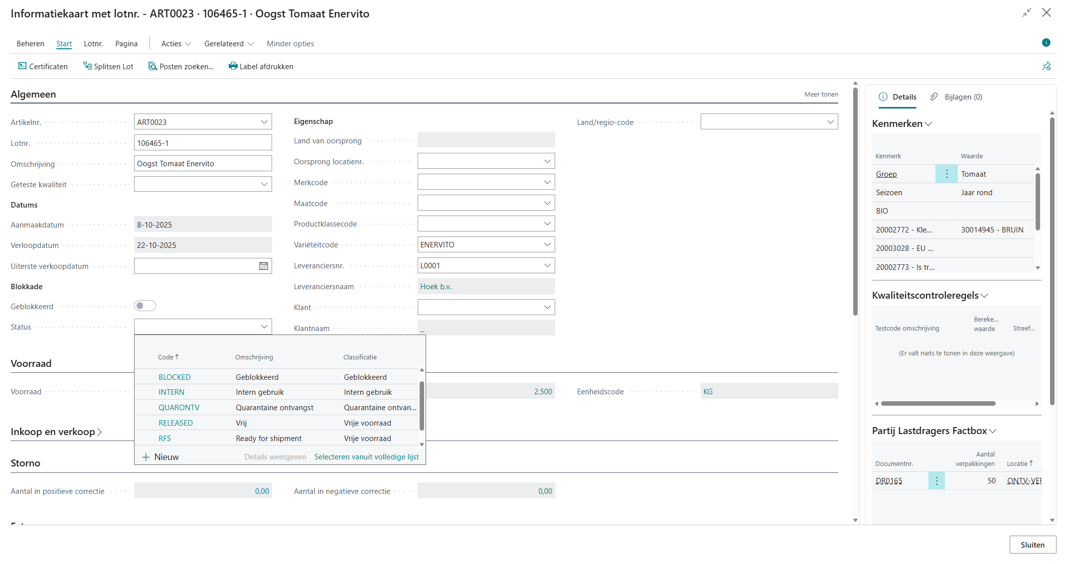 3. Lot- en keuringsdocumenten zijn nu écht aan elkaar gekoppeld. Vanuit een kwaliteitsdocument zie je direct welke loten erbij horen. En vanuit een lot zie je welke kwaliteitsdocumenten eraan vastzitten. Alles overzichtelijk in een factbox.