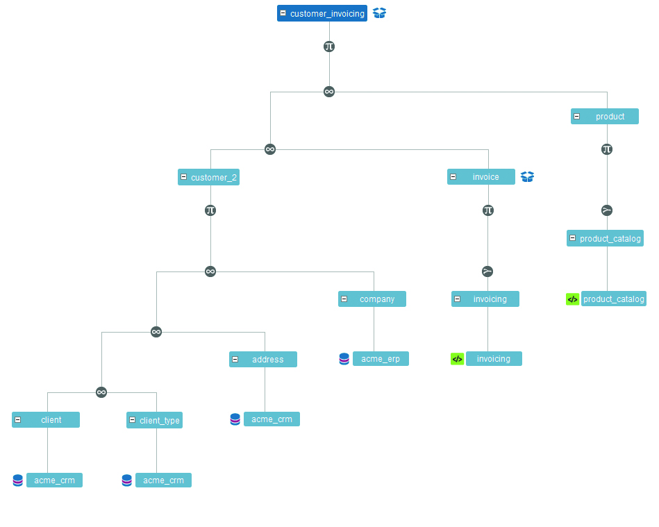 Het samenstellen van een ‘voorbeeld query’ met behulp van views en tabellen die te vinden zijn in de Denodo Dynamic Data Catalog.